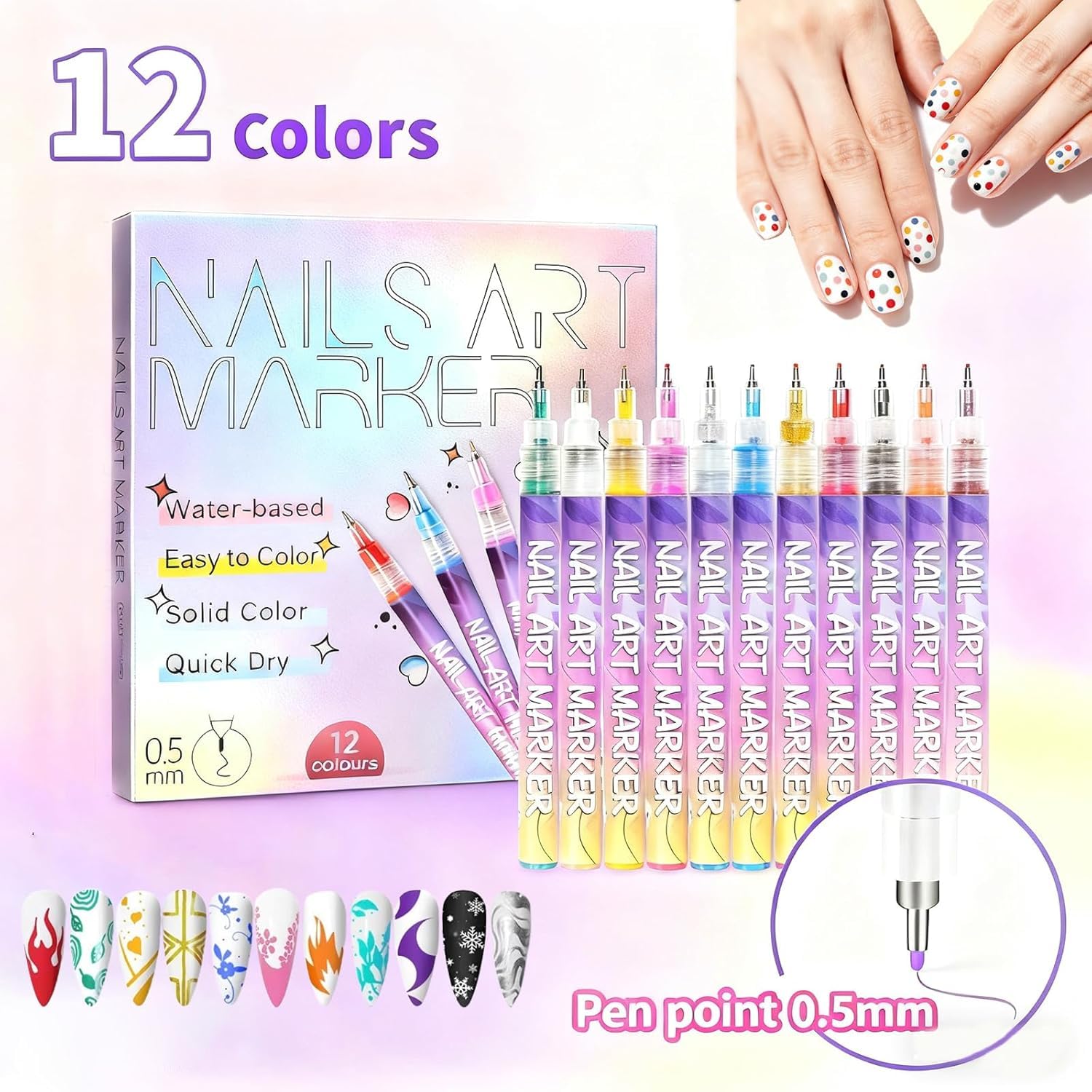 Designed for convenience and performance, these nail art pens are waterproof, long-lasting, and easy to handle. From simple accents to complex artistic designs, they give you the freedom to express your creativity anytime, anywhere—making them a must-have tool for DIY manicures and nail art lovers. ✨💖