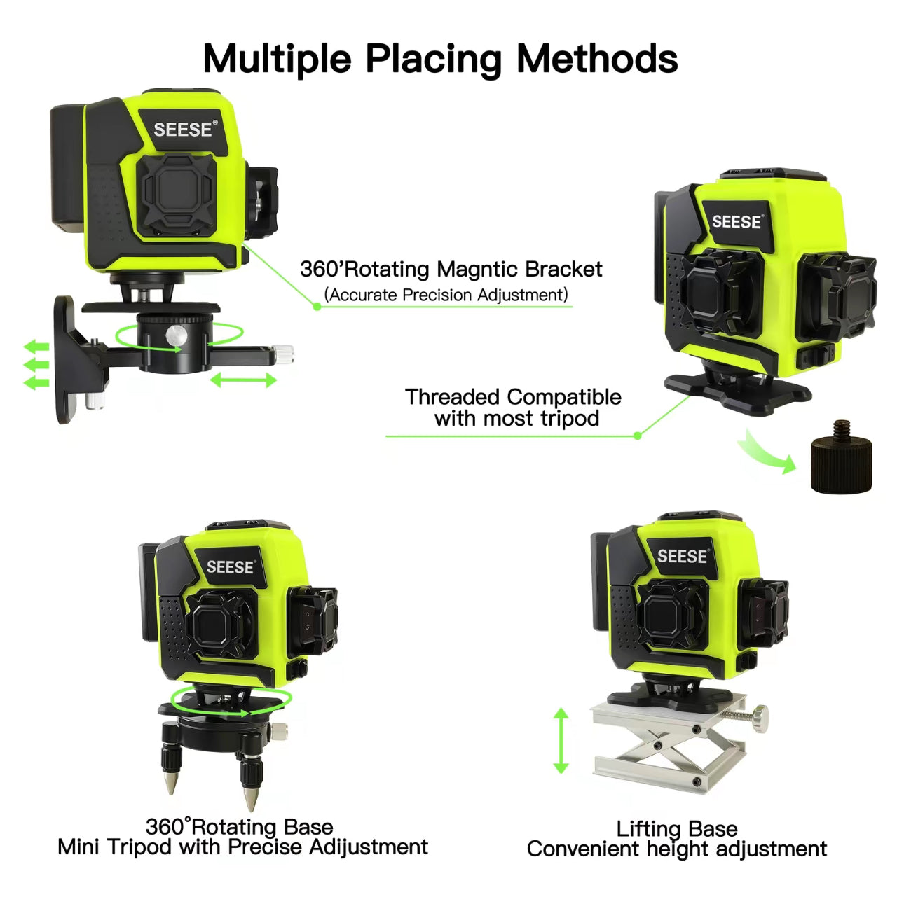 Tackle every project with confidence using the LevelGrid 360 Pro — a professional-grade 12-line green laser level built for precision, efficiency, and unmatched versatility. Whether you're installing tile, hanging cabinets, or managing large-scale home improvement tasks, this tool delivers crystal-clear accuracy every time.